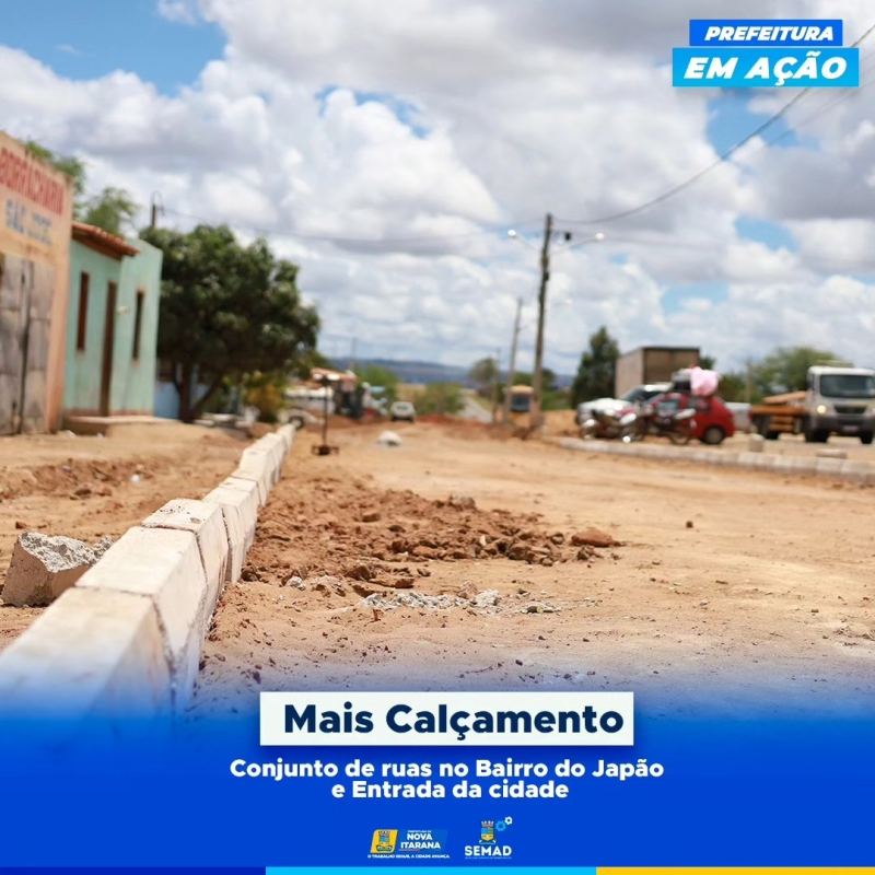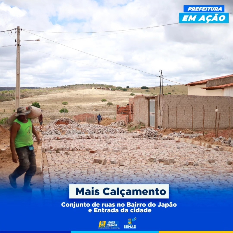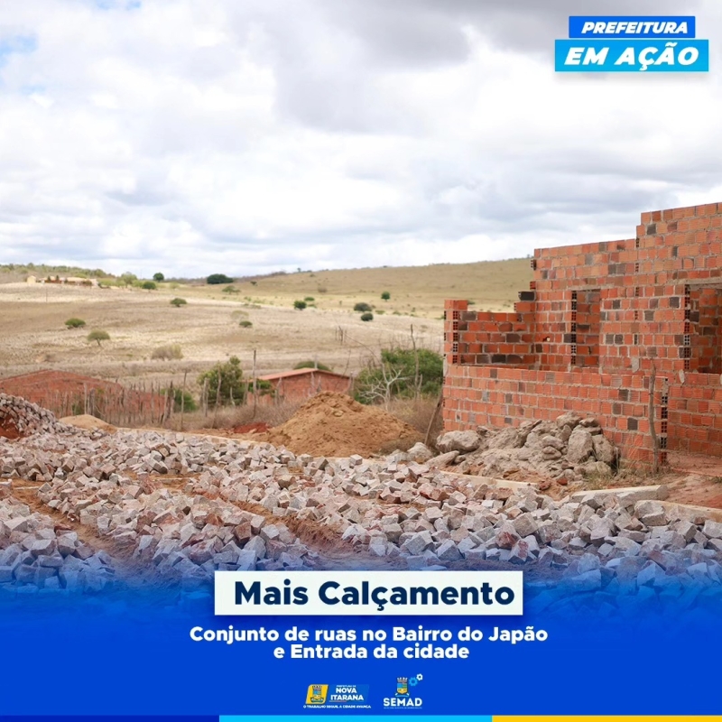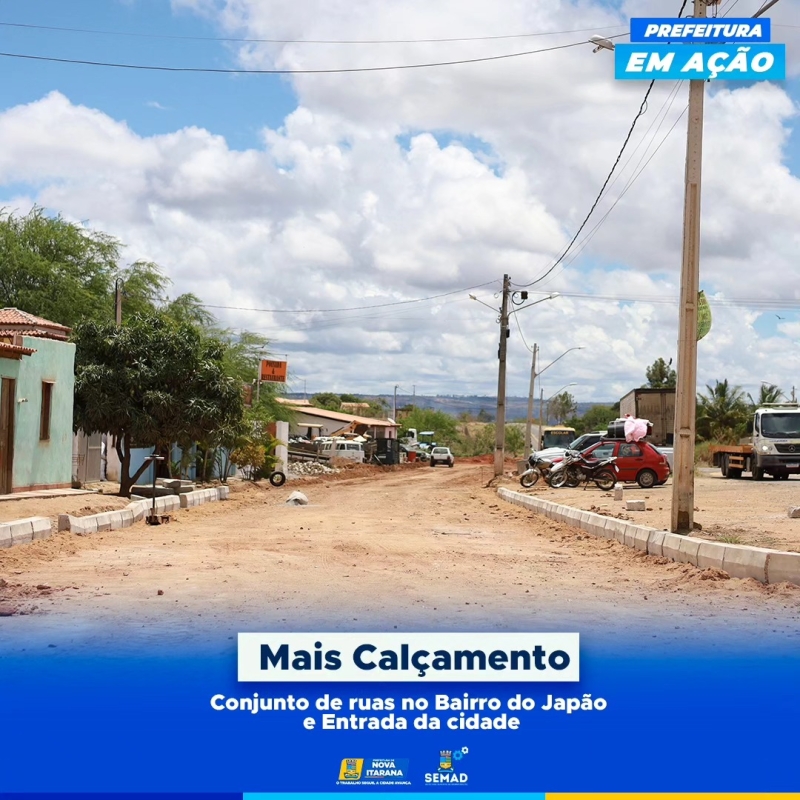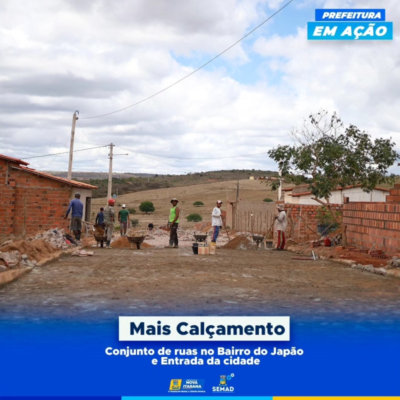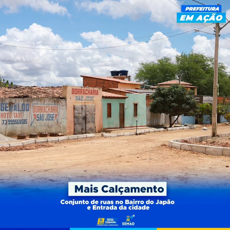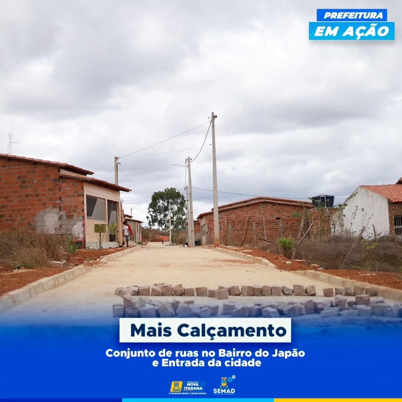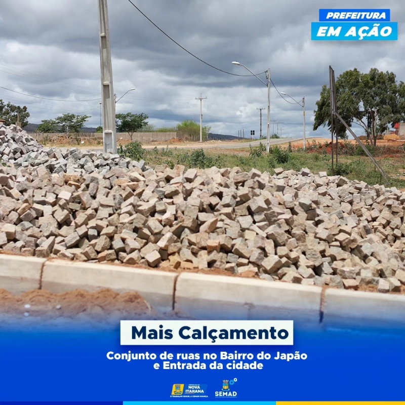 Calçamento no conjunto de ruas do bairro do Japão e na entrada da cidade.